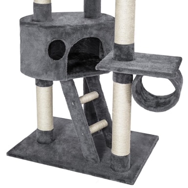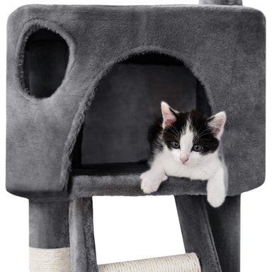 Dette kattetræ er udstyret med to rummelige kattehuse, hvor din kat kan trække sig tilbage og finde ro. Disse kattehuse er ideelle til at gemme sig, slappe af og sove. De tilhørende trapper gør det nemt for din kat at bevæge sig mellem niveauerne og finde sit perfekte hvilested.