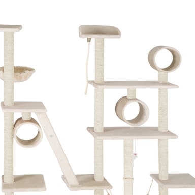 Med det imponerende kradsetræ Snooky fra tectake får foretagsomme tigre alt, hvad de kan ønske sig. Dette alsidige kattetræ tilbyder en verden af muligheder for din kat – lige fra leg og klatring til afslapning og hvile. Kradsetræet er udstyret med rør, liggekøjer, en udsigtsplatform, en rummelig kattehule og en hyggelig hængekøje, der tilsammen skaber en varieret og spændende legeplads.