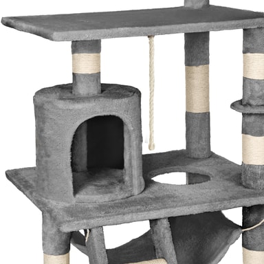 Hvem elsker ikke følelsen af at slappe af i en hængekøje? Det gør katte også! På dette kradsetræ er der en indbydende hængekøje under første niveau, som kan nås direkte eller ved lidt klatreakrobatik. Liggerkøjen tillader din kat at rulle sig blidt sammen, mens det bløde polyester tilbyder optimal komfort.