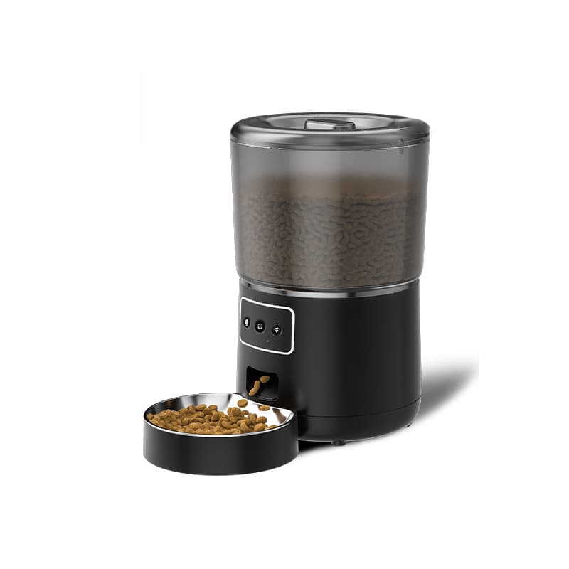 Wi-Fi-aktiveret smart foderautomat til kæledyr, 4L hundefoderautomater med skål i rustfrit stål Sort