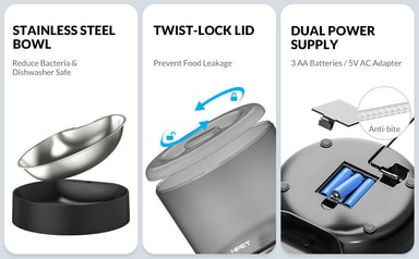 Med en generøs 4-liters kapacitet rummer foderautomaten rigelig mad til dit kæledyr, hvilket reducerer hyppigheden af genopfyldninger. Perfekt til travle tidsplaner og kortvarige rejser.Læs mere om produktet