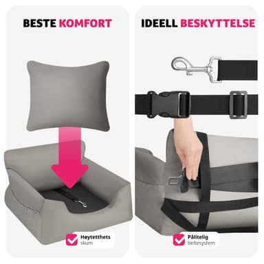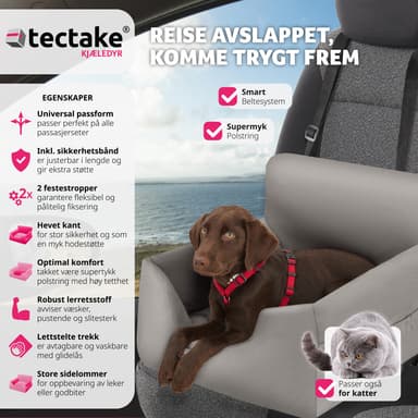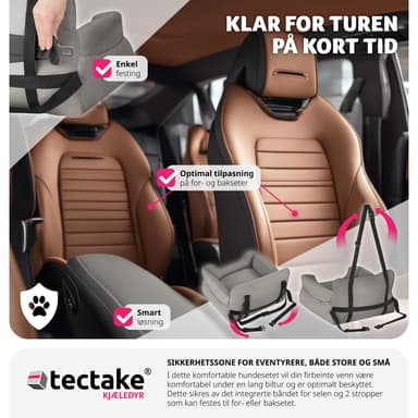 Bilsæde hund Milow, polstret, med sikkerhedsline