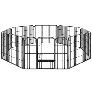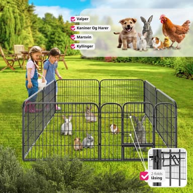 Denne hvalpegård er ikke kun perfekt til hvalpe, men kan også bruges til andre små kæledyr som kaniner og marsvin. Med flere opstillingsmuligheder og foldbar design, kan den nemt tilpasses dine behov og opbevares kompakt, når den ikke er i brug.