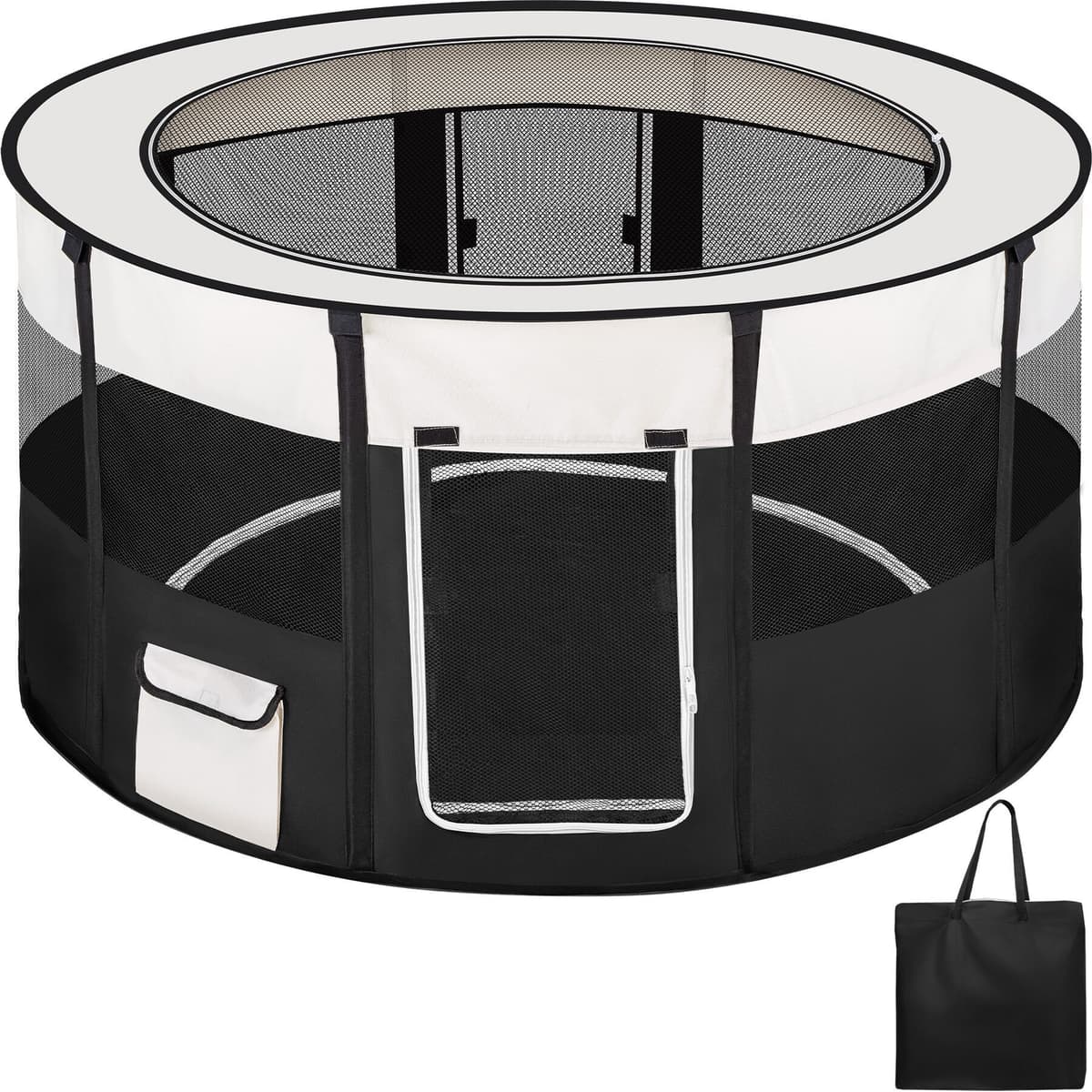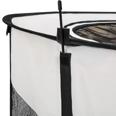 Den praktiske og rummelige hvalpegård Carola fra tectake er perfekt egnet til hundehvalpe eller andre små dyr. Dyreindhegningen tjener som et hyggeligt sted til at sove, lege og hvile sig. Hvalpegården kan let foldes sammen og er ideel, når man er på farten, på rejser eller derhjemme. Meshnettene sørger for en god luftcirkulation. Hvalpegården er let at gøre ren. Derudover er der anbragt lommer til eventuelt tilbehør som f.eks. legetøj. Bestil den essentielle hvalpegård Carola til din firbenede ven.