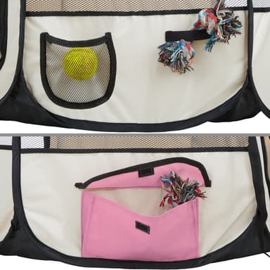 Denne hvalpegård kommer med et innovativt Pop-Up-System, der gør opsætningen utrolig enkel. Det sammenfoldbare design gør det nemt at opbevare og transportere hvalpegården, hvilket er ideelt, hvis du ofte skifter mellem indendørs og udendørs brug. Hvalpegården vejer blot 1,6 kg, hvilket gør den meget let og transportabel.