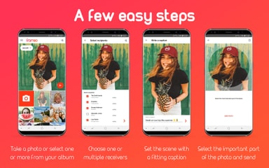 Del dine eventyr med dine venner nemmere end nogensinde før. Tag blot et billede og skriv en besked, som fremvises med billedet i fotorammen. Du kan også skrive en billedtekst, så dine venner ved hvad du tænkte, da du tog billedet. Efter du har downloadet Frameo-appen, kan du sende dine yndlingsbilleder direkte til fotorammen.