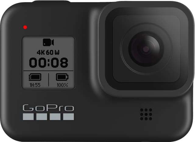 Kompakt, kraftfuld og hårdfør. GoPro Hero 8 Black action-kameraet bringer videooptagelse til et nyt niveau. Det er udstyret med en sensor med høj opløsning og kan gemme dine vildeste eventyr med højt detaljeniveau og tilføje mange praktiske funktioner som eksempelvis time-lapse, slow-motion og mere. Og med den robuste trådløse forbindelse kan du skabe GoPro QuikStories med GoPro mobilappen.