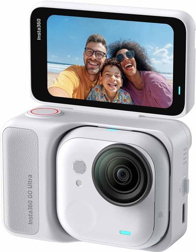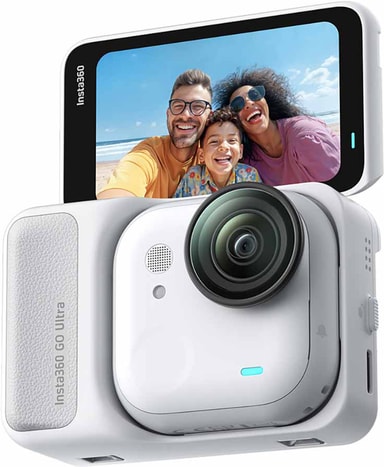 Fang dine eventyr med Insta360 GO Ultra Standard Bundle actionkameraet. Dette actionkamera har en stor 1/1,28" sensor til skarpe billeder selv ved dårligt lys. Optag jævne 4K-videoer ved 60 fps for at genopleve hvert øjeblik i fantastisk detalje.Læs mere om produktet