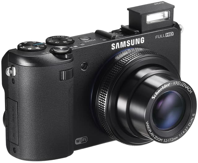 Highend kompakt kamera med F1.4 objektiv og stor 1/1.7 "CMOS-sensor med 12 megapixel som giver flotte resultater, selv i dårlig belysning. Den 3,0" drejelige VGA AMOLED skærm gør det nemt at komponere billeder selv i dagslys. Med indbygget Wi-Fi kan du dele dine billeder på Facebook eller via e-mail direkte fra kameraet. Kræver kun at du har adgang til et trådløst netværk. Du kan endda bruge din smartphone som fjernbetjening med LiveView.