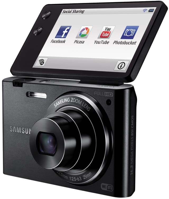 Smart kamera med en stor 3,3 "AMOLED flip skærm som gør det nemt at tage flotte selvportrætter og lige så enkelt at tage billeder i forskellige vinkler. 16 megapixel BSI CMOS-sensor får alle detaljer ind i billedet. Selv i mørke situationer. Med indbygget Wi-Fi kan du dele dine billeder på Facebook eller via e-mail direkte fra kameraet så snart du har adgang til et trådløst netværk. 5x optisk zoom med vidvinkel, og du kan også optage Full HD film med dette stilfulde kamera.