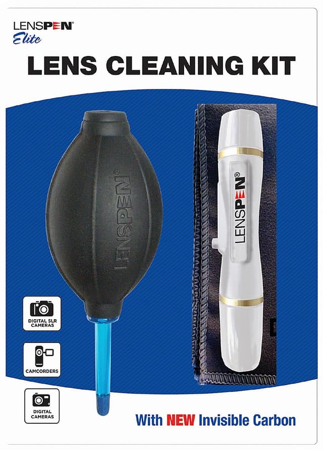 Lenspen rensesæt til DSLR kameraer gør, at du kan fjerne støv, fedtmærker og fingreaftryk fra din kameralinses overflade. Sættet indeholder en tilbagetrækkelig børste med en rensende spids af filt, en Hurricane blæser og en MicroKlear mikrofiber klud. Et usynligt rensemiddel sikrer grundig fjernelse af uønsket smuds.