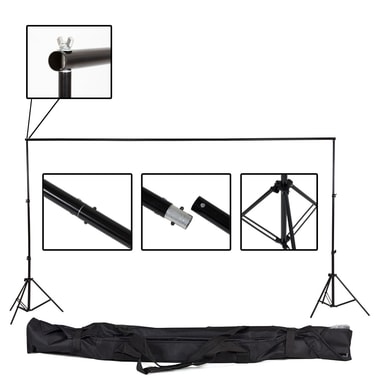 Store fotolærreder til professionelle fotos og videoer. Størrelse 3 x 6 m. Det højdejusterbare teleskop stativ monteres let og de massive aluminiumstænger giver en super stabilitet. Baggrundsstof uden skæmmende midtersøm og frynser. Ideel til hurtige snit og førsteklasses-effekter. Tasken har separate lommer som giver mulighed for ekstra opbevaring.