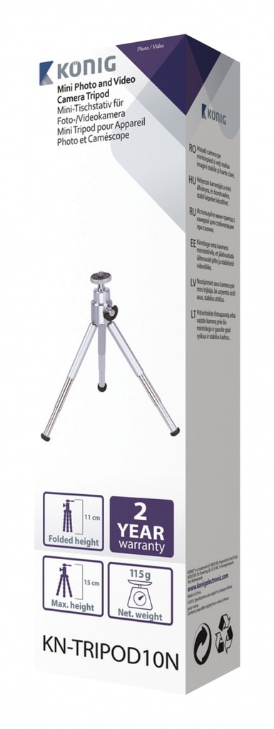 König mini trefod til foto- og videokameraermini-stativ til foto- og videokameraer, hvis du vil tage knivskarpe og stabile billeder.den praktiske og kompakte størrelse passer i enhver foto-/videotaske og er lige til at folde sammen.justerbare ben i 3 niveauer. pakken indeholder:1x stativbrugervejledning