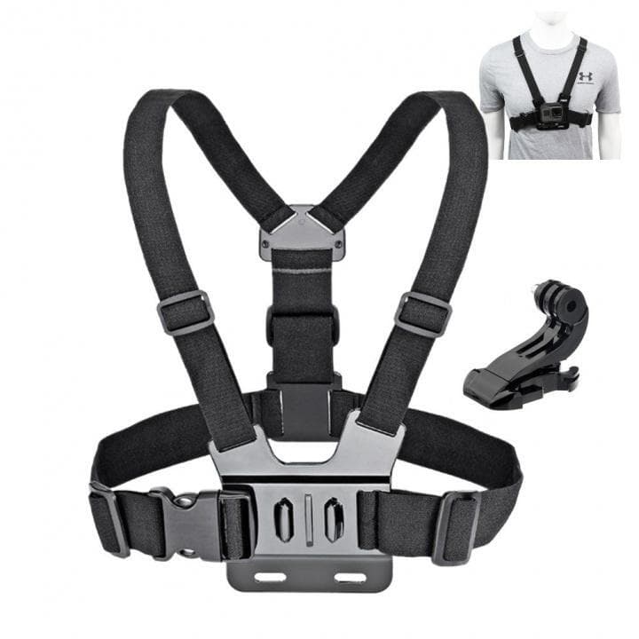 Brystmontering til actionkamera. Justerbare bryst- og skulderremme er 1,5 tommer brede, elastiske med dobbelt styrke. Kompatibel med GoPro alle Hero Sessions andre actionkameraer med en to-stift montering, herunder DJI Osmo Action, Insta360.