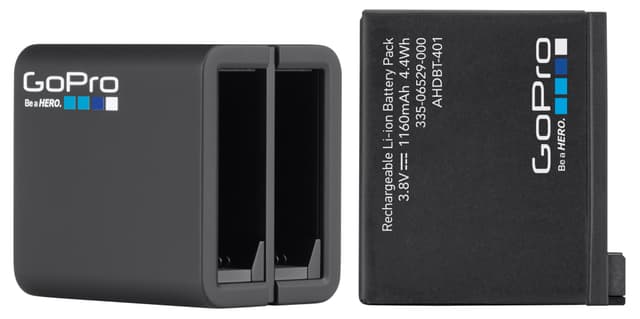 Dobbelt batterioplader til GoPro HERO4, der oplader to batterier til dit actionkamera samtidigt og et erstatteligt batteri med 1160 mAh kapacitet giver ekstra strøm til dine udendørs eventyr. Opladeren med USB brugerflade kan forbindes til en standard USB oplader, til GoPro Wall eller Auto oplader - eller til en computer. En dobbelt LED-indikator informerer dig om status på opladning, så du ved, om batterierne er klare til action eller ej.