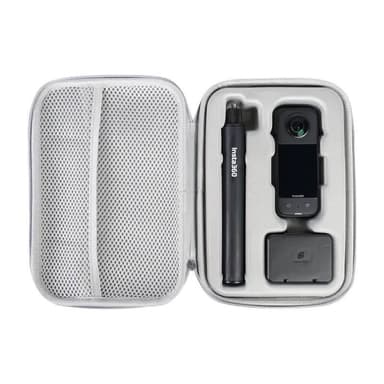 Sørg for sikker transport af dit optageudstyr. Insta360 coveret passer ikke kun til dit X2- eller X3-kamera, men også et ekstra batteri og Invisible Selfie Stick (70 cm). Særlige rum vil gøre det nemt for dig at organisere dit rum og stabilt holde dine enheder på de rigtige steder, hvilket beskytter dem mod stød og stød. Desuden blev der brugt lette, men holdbare materialer til at fremstille tilbehøret - så det vil tjene dig godt i lang tid.