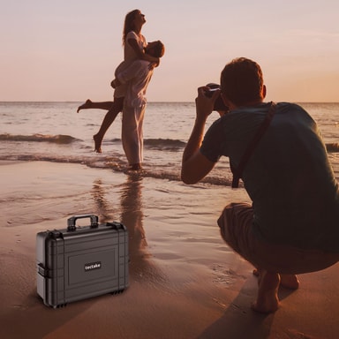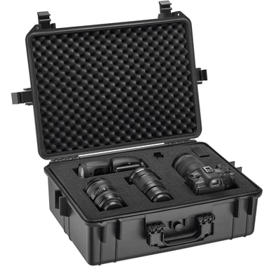 Denne kamerataske i fin kvalitet fra tectake er perfekt egnet til sikker transport af videokameraer, digitale- og analoge kameraer, diverse måleapparater og våben. Denne stabile og fine kamerakuffert har også god plads til større kameraudstyr. Til både spejlrefleks, digital eller videokamera. Fotokufferten er også ideel til opbevaring af blitzlamper. De 4 forskellige skumindlæg gør det muligt at opbevare genstandene, som du vælger. Kamerakufferten er sikret mod vand med lukning 4 steder. Fotokufferten er også vandtæt (ned til 1 meter) og har en trykudligningsventil.