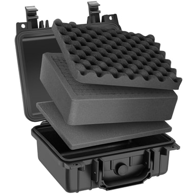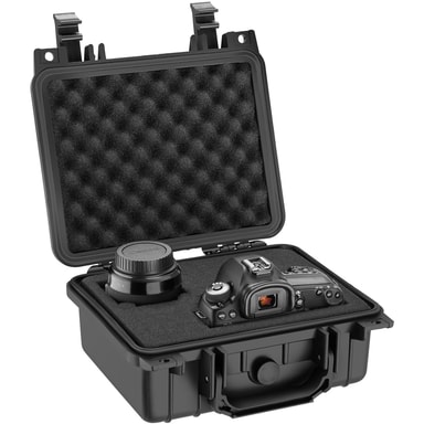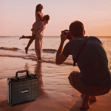 Den lette kamerataske fra tectake er designet til at beskytte dit kameraudstyr optimalt. Den robuste yderskal gør denne kuffert immun mod stød og vejrforhold. Spændelukningerne og fortætningsgummiringen beskytter imod snavs, fugt, regn og vand. Trykudligningsventilen i transportkufferten sørger konstant for en ligevægt imellem trykket inde og udenfor kamerataske. I skumindsatsen, som man frit kan indrette kufferten med, kan det kostbare indhold ligge sikkert på sin plads. Man kan dermed trygt transportere sit skrøbelige udstyr i den robuste kamerakuffert.