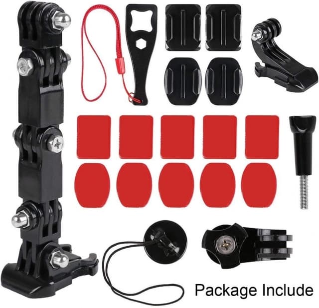 Et smart tilbehørssæt til GoPro med masser af gode beslag, som du kan bruge til at fastgøre dit kamera på din motorcykelhjelm eller cykelhjelm. Så får du den rigtige Point of View-vinkel. Byg din egen enhed, så du får den løsning, der passer til dine præferencer. Kun fantasien sætter grænser med disse dele, der er nemme at installere. Nu behøver du endelig ikke tape en holder fast på din hjelm.