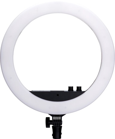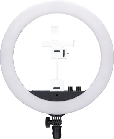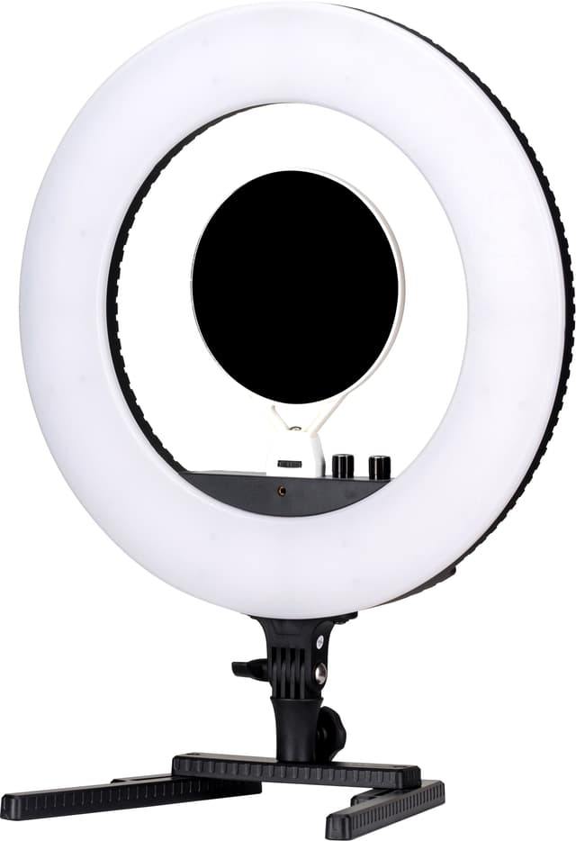 Nanlite Halo 14 LED-ringlyset er 35,5 cm i diameter, kan dæmpes og du kan nemt justere farvenuancen. Du kan placere din smartphone i beslaget og optage kreative videos hjemmefra. Med det universelle 5/8” skruegevind kan du montere lyset på enhver tripod. Lyset er drevet af AC strøm via den medfølgende adapter.
