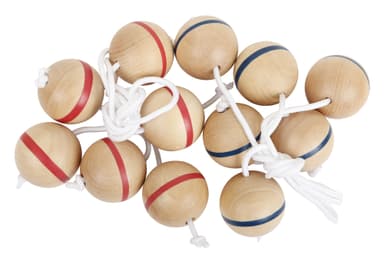 Mål: H88xB61xD60 cm Kuglegrupper: 3 røde: Ø4,5 cm 3 blå: Ø4,5 cm Materiale: FSC-certificeret gummitræLæs mere om produktet