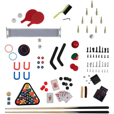 Takket være det smarte skiftesystem kan de forskellige niveauer nemt udskiftes efter lyst og humør. Hvert spil kommer med det passende tilbehør, såsom bordtennisbat,fodbold,billardkridt eller rengøringsbørste.
