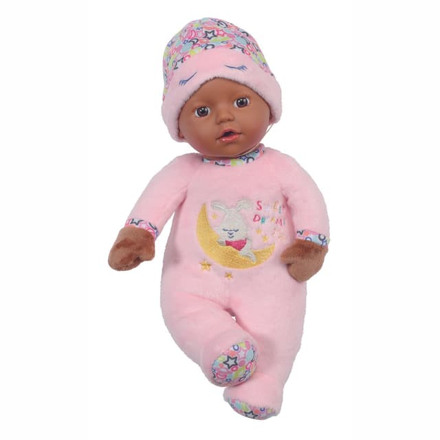 En sådan sömntuta... Den lilla Sleepy ser sig runt omkring med öppna ögon, men hon blir så trött av att upptäcka hela världen. Så drar hon ner nattluvan med de påsydda ögonlocken helt ner till nästan och somnar. Den 30 cm dockan har en mjukt uppstoppad kropp och är lämplig för de allra minsta dockföräldrarna från 0 års ålder. När det blir för tråkigt att räkna får, roar skallran inne i den söta dockan med underhållningen. Och om en arm eller ben används som bitring, är det inget problem eftersom dockan kan handtvättas på 30 grader. BABY born tygdocka för att leka och mysa med för att få barnet att falla i sömn och som introduktion till mamma-pappa-barn rollspel lekar. Kräver batterier (ingår). Lämplig för bebisar från 0 år. Innehåller: - BABY born Sleepy tygdocka för bebisar 30 cm med nattluva