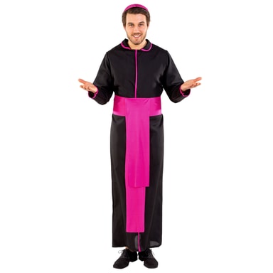 Kostume til mænd Ærkebiskop Ferdinand består af en liturgisk, lang kappe. Den har lukning i nakken og en farverig søm i en opretstående krage samt på ærmerne og på forsiden. Der følger ligeledes et bælte med lukning med samt en kalot, materiale: 100 % polyester.