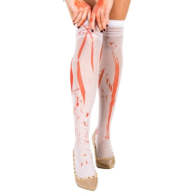 Denne blodige sygeplejerske halloween udklædning er med garanti et blikfang til karnevallet eller halloweenfesten. Zombie-sygeplejerskens patienter må underlægge sig en hård undersøgelse, som blodsporene på dragten antyder. Kjolen har en flot gennemgående lynlås. Herudover er der et par flotte knæstrømper med gruopvækkende blodspor på, såvel som en mundbeskytter og hovedbeklædning med røde kors tegnet. Tøv ikke med at hoppe i denne flotte sygeplejerske udklædning til fastelavn eller til halloweenfesten.