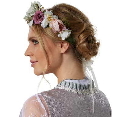 Den fornemme blomsterkrans, sommereng, er et blikfang til mange lejligheder. Den stilfulde hovedpynt fungerer overbevisende med sin naturlighed og med stor kærlighed til detaljen. Takket være satinbåndene kan størrelsen tilpasses individuelt. Den flotte blomsterkrans sommereng iscenesætter din påklædning, materiale: Plast, stof.