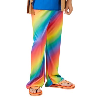 Kostume til børn, Boy Peacemaker, består af en fin t-shirt, en fed vest i velours-ruskindslook samt et par farverige trompetbukser. Der hører også et smart pandebånd med til kostumet. Materiale: 100 % polyester.