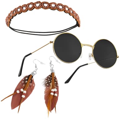 Dyk ned i Flower-Power-tiden med damekostumet Hippie Vest! Dette sæt er det perfekte valg for alle, der elsker den afslappede stil fra 60'erne og 70'erne. Den brune vest suppleres med matchende tilbehør som solbriller, et hårbånd og stilfulde øreringe, der fuldender dit look.