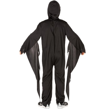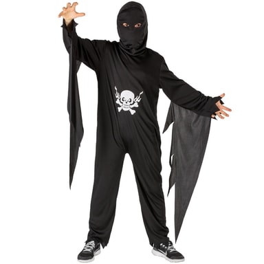 Halloweenkostumet til børm er det perfekte outfit til særlige lejligheder og garanterer at vende hoveder. Dette slidstærke kostume, der dækker hele kroppen, giver dit barn et unikt look. Detaljer som øjenudskæringerne og kranieemblemet på brystet gør designet både slående og uhyggeligt.