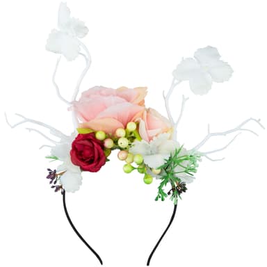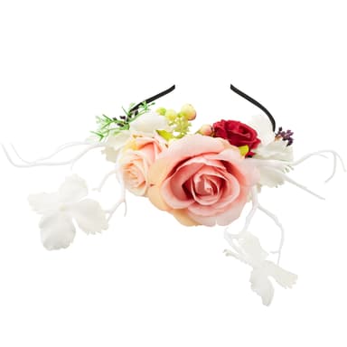 Det fornemme, diadem Alperose, er et blikfang til mange lejligheder. Den stilfulde hovedpynt fungerer overbevisende med sin naturlighed og med stor kærlighed til detaljen. For gøre den mere behagelig at bære er bøjlerne dækket i stof. Det farverige diadem alperose iscenesætter din påklædning, materiale: Plast, stof.