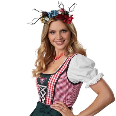 Det fornemme, diadem Skovlyst, er et blikfang til mange lejligheder. Den stilfulde hovedpynt fungerer overbevisende med sin naturlighed og med stor kærlighed til detaljen. For gøre den mere behagelig at bære er bøjlerne dækket i stof. Det farverige diadem skovlyst iscenesætter din påklædning, materiale: Plast, stof.