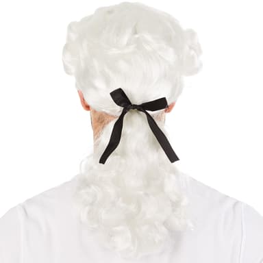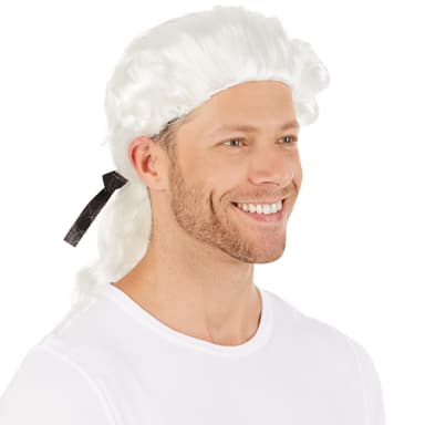 Hvid paryk i barok stil med sidekrøller og fletning. Længde på fletning: Ca. 30 cm. Materiale: 100 % polyester.