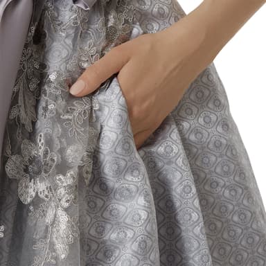 Et absolut blikfang er det detaljerigt designede blondeskørt med blomster mønster, der skinner i blid grå. Det supplerer ikke kun dirndlen visuelt, men bringer også et strejf af romantik ind i looket. Sløjfen – bundet til venstre, højre eller i midten – understreger din stil og afslører subtilt noget om din civilstatus. Den blødt faldende nederdel med skinnende vævestruktur og dekorativt bånd gør hver bevægelse til et elegant højdepunkt.