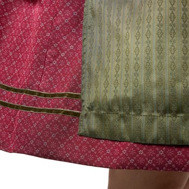 Nederdelen i olivengrøn stof med fin stribestruktur skaber en spændende kontrast til overdelen. Med sin klassiske længde virker dirndlen både festlig og hverdagsvenlig. Den perfekt matchende sløjfe fanger farven fra nederdelen og tiltrækker al opmærksomhed – ideel for dem, der ønsker at vise sig stilbevidste og alligevel traditionsbundne.