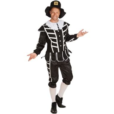 Kostumet består af en langærmet overdel i sort og hvid, et par 7/8-bukser og en vest. Der følger også knæstrømper og en hat med. Materiale: 100 % polyester.En garde! Genopliv den fantastiske epoke med helte i kapper med svær i dette kostume.Læs mere om produktet