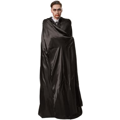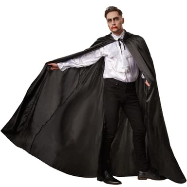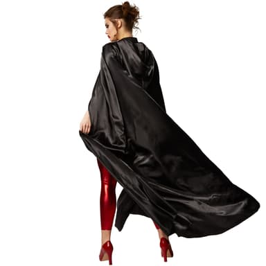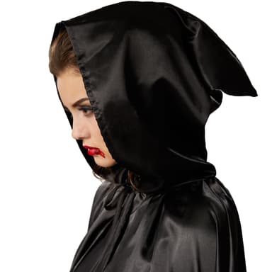 Bland dig med fastelavnsfolket og forbliv alligevel i det skjulte takket være den mystiske kappe. Den gulvlange kappe hylder sin ejer fuldstændigt ind og vækker således nysgerrigheden. Frygtelig vampyr eller sky slotsfrøken? Hvem gemmer sig bag dette fine stof? Du bestemmer, hvem du vedkender dig at være!