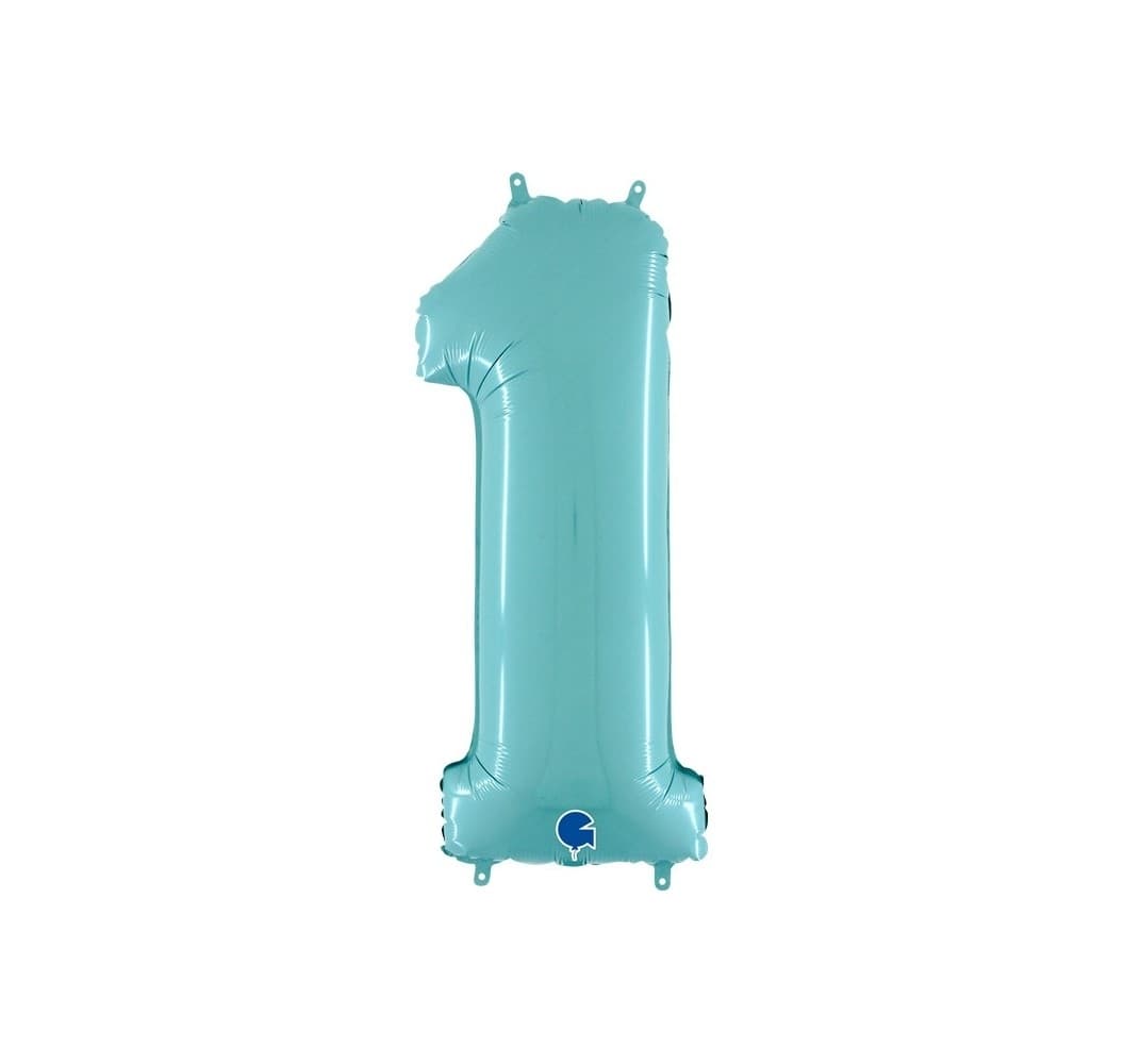 Folie ballon. Nummer ""1"", pastel lyseblå. Størrelse 26""/66 cm Ikke oppustet ballon.Læs mere om produktet
