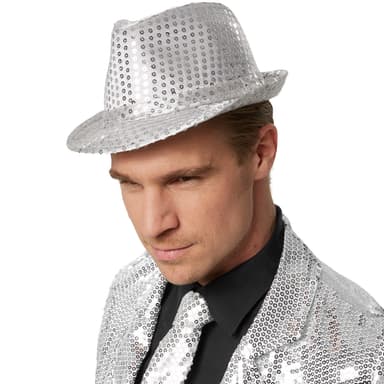 Der bliver sjov i gaden med partyhatten med pailletter! Hver eneste bevægelse får de påsyede pailletter til at glimte og funkle. Den brede skygge og indbulingerne foroven og på siderne skaber den karakteristiske form på denne hat. Det fine hattebånd giver det ekstravagante tilbehør ekstra glans, materiale: 100 % polyester.