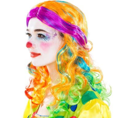 Colour-parykken imponerer med det farverige hår. Modellen kan kombineres med mange af vores kostumer. Du kan fortrylle selskabet som klovn eller væsen fra fantasi- eller feverdenen, når du skal til fastelavn, temafest eller halloween. Parykken er også fremragende at kombinere med et heksekostume. Selv i neon-fastelavnsuniverset passer parykken fabelagtigt. Fest igennem til fastelavn med den trendy paryk, Colour Block.