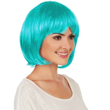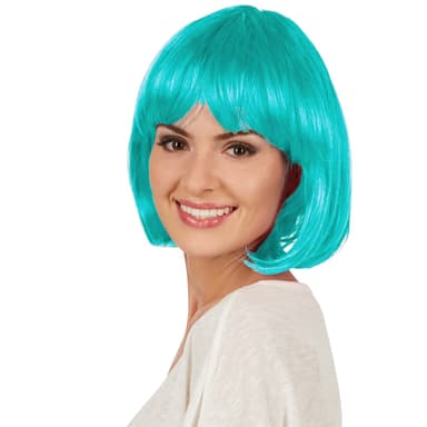 Bob paryk med pandehår i flot grøn. Hårlængde: Ca 26 cm. Materiale: 100 % polyester.
