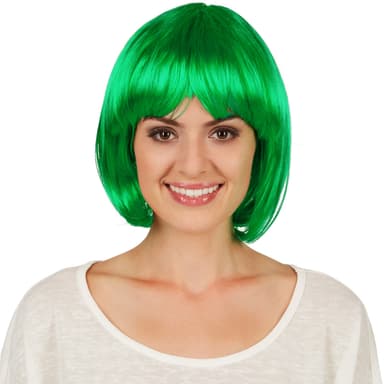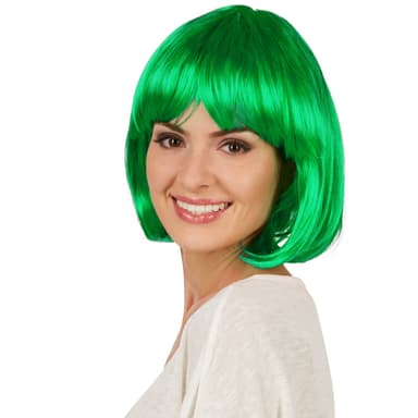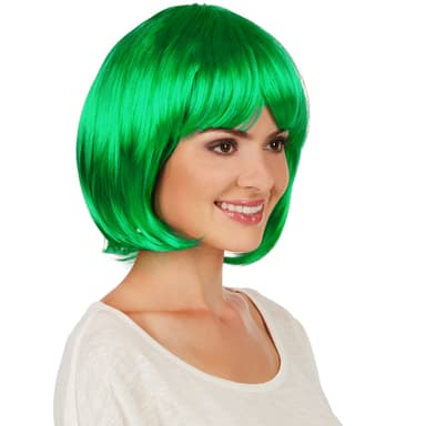 Bob paryk med pandehår i flot grøn. Hårlængde: Ca 26 cm. Materiale: 100 % polyester.
