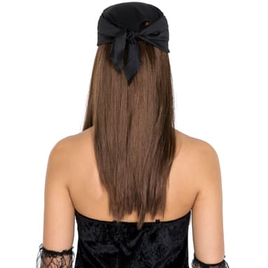 Den lange, sorte paryk er den ideelle fuldendelse af dit piratkostume! Parykken er et ægte highlight med de pragtfulde fletninger og tørklædet til hovedet. Piratbrud-parykken gør dig til en vaskeægte sørøverkvinde til enhver udklædnings- og temafest. Giv det sidste pift til dit fastelavnsoutfit med piratbrud-parykken.