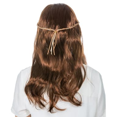 Paryk med langt hår, med 4 små fletninger med perler samt små knogler til pynt. Længde: Cirka 50 cm. Materiale: 100 % polyester.