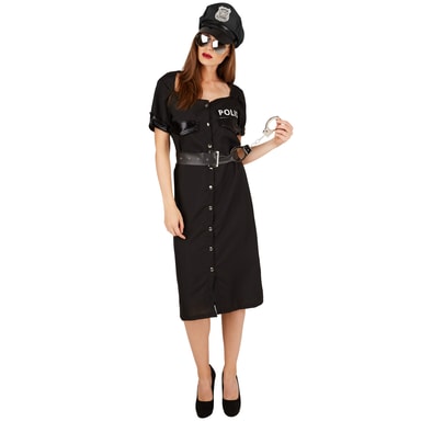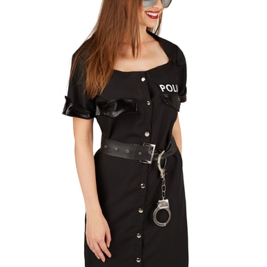 Som politikvinde kan du være sød eller streng! En ting er sikker: Hvem, du end lægger i håndjern, vil blive helt vild! I denne fantastiske kjole sørger du for at få opmærksomheden til alle fester. Det tætsiddende kostume, som er holdt i sort, gør dig til en flot repræsentant for ordensmagten. Der er ingen, der gør noget galt til denne udklædningsfest. Har du altid drømt om at arbejde i politiet? Fastelavn er den perfekte anledning til at gøre krav på forhør af attraktive mænd på dansegulvet. Forresten: med lidt kunstigt blod og den rigtige makeup kan du også sagtens bruge kostumet til Halloween.