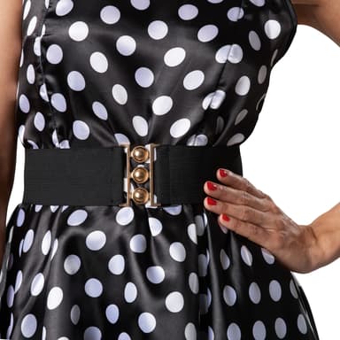 Kvindekostumet, Rockabilly Lady, består af en prikket kjole af glitrende stof. Elastikbæltet og det smukt designede spænde forstærker taljen og deler kostumet optisk op i en over- og underdel. Nederdelen har en påsyet søm af blondestof, begge underskørter er af satin og tyl, materiale: 100 % polyester.