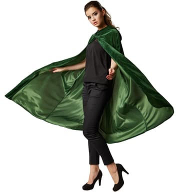 Pep dit fastelavnskostume op med den ærmeløse fløjlskappe med hætte til hende og ham. Det fine stof omgiver sin ejer med en hemmelighedsfuld aura. Om det er som ridder, vampyr eller troldmand, vil fløjlskappen give din udklædning noget ekstra.